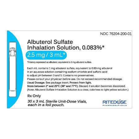 Albuterol Sulfate Preservative Free 0.083% 2.5 mg / 3 mL Solution 30 Vials