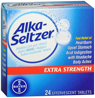 Pain Relief Alka-SeltzerĀ® Extra Strength 1 000 mg – 500 mg – 1985 mg Strength Anhydrous Citric Acid / Aspirin / Sodium Bicarbonate Effervescent Tablet 24 per Box