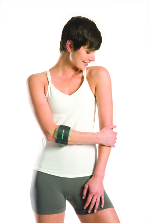Pneumatic Tennis Elbow Support AircastĀ® One Size Fits Most Hook and Loop Closure Armband Style Left or Right Arm 8 to 14 Inch Forearm Circumference Black