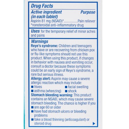 | Manufacturer | https://imgcdn.mckesson.com/CumulusWeb/Click_and_learn/SDS_MGM99_ASPIRIN_TAB_CHEW_ADLT_81MG_S_M.pdf |