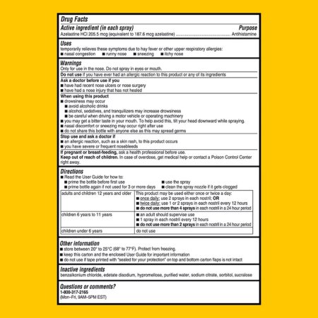 ASTEPRO ALLERGY SPR NASAL 205.MCG 120METERED SPRAYS quantity