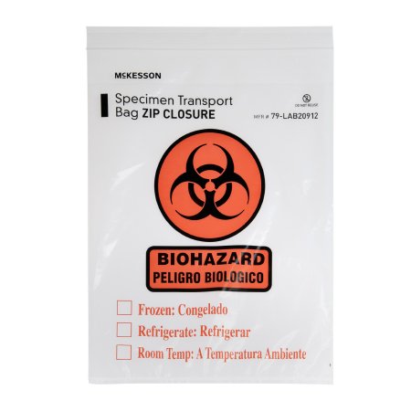 Specimen Transport Bag with Document Pouch McKesson 9 X 12 Inch Zip Closure Biohazard Symbol / Storage Instructions NonSterile