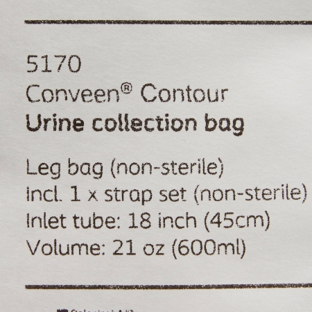 Urinary Leg Bag ConveenĀ® Security+ Anti-Reflux Valve NonSterile 600 mL Polyethylene / Flocked
