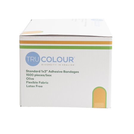 Adhesive Strip Tru-ColourĀ® 1 X 3 Inch Fabric Rectangle Olive Sterile
