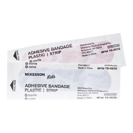 Adhesive Strip McKesson Kids™ 3/4 X 3 Inch Plastic Rectangle Kid Design (Blue / Pink Camo) Sterile