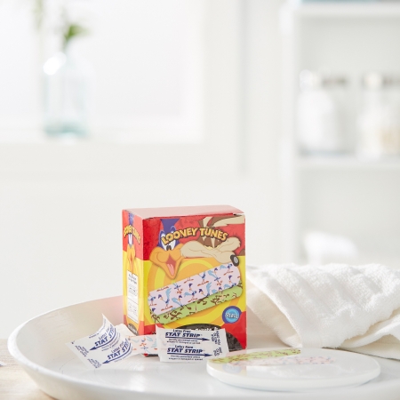 Adhesive Strip Looney Tunes™ Stat Strip® 3/4 X 3 Inch Plastic Rectangle Kid Design (Looney Tunes Wile Coyote / Roadrunner) Sterile