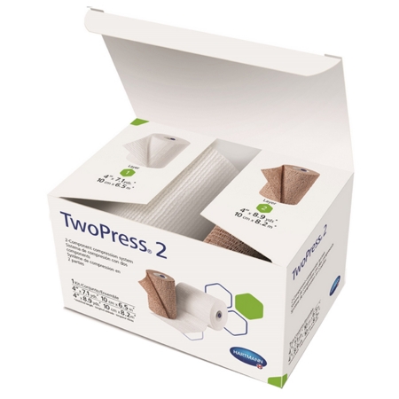 2 Layer Compression Bandage System TwoPress® 2 4 Inch X 7 Yard / 4 Inch X 8-9/10 Yard Self-Adherent Closure Tan / White NonSterile 40 mmHg