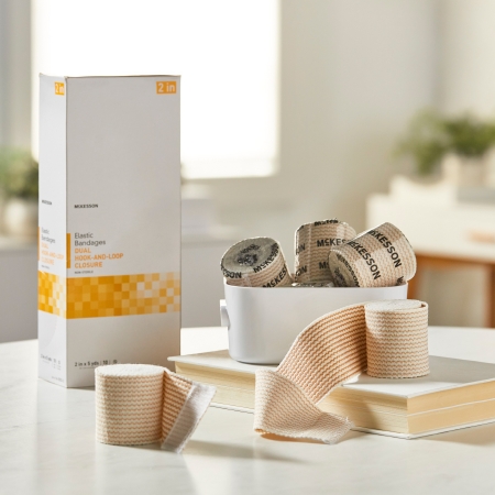 Elastic Bandage McKesson 2 Inch X 5 Yard Double Hook and Loop Closure Tan NonSterile Standard Compression