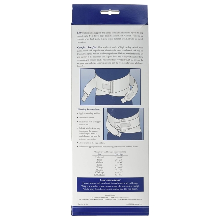 Back Support FLA OrthopedicsĀ® Standard Small Hook and Loop Closure 28 to 32 Inch Hip Circumference 10 Inch Height Adult
