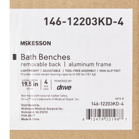 Bath Bench McKesson Without Arms Aluminum Frame Without Backrest 19-1/4 Inch Seat Width 300 lbs. Weight Capacity