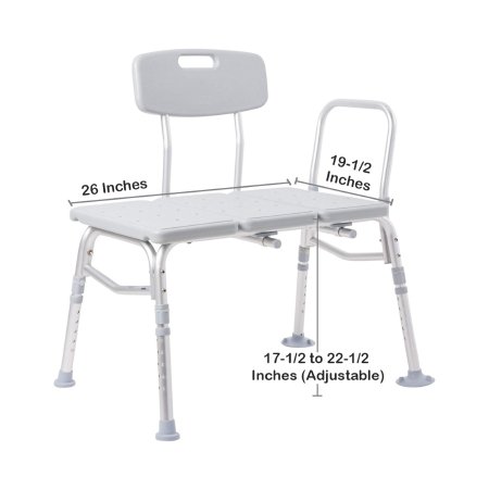 McKesson Knocked Down Bath Transfer Bench Removable Arm Rail 17-1/2 to 22-1/2 Inch Seat Height 400 lbs. Weight Capacity
