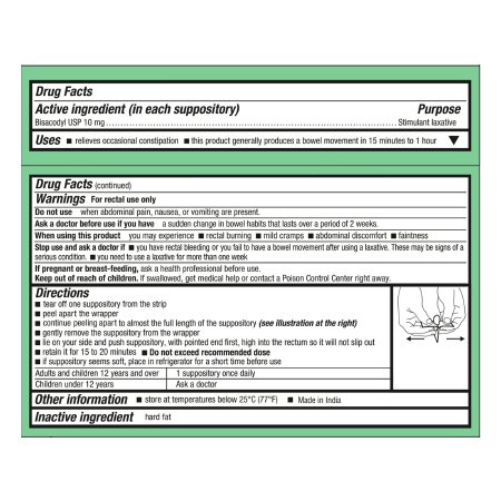 BISACODYL LAX SUPPOSITORY 10MG (12/BX 6BX/CS)