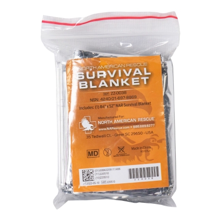 Emergency Blanket North American Rescue® 56 X 84 Inch Mylar / Polyethylene 1.84 oz.