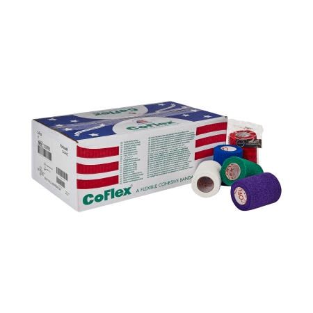 Cohesive Bandage CoFlex® 3 Inch X 5 Yard Self-Adherent Closure Teal / Blue / White / Purple / Red / Green NonSterile 14 lbs. Tensile Strength