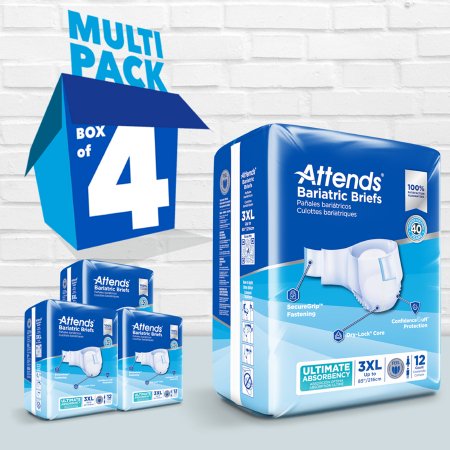 Unisex Adult Incontinence Brief AttendsĀ® Bariatric 3X-Large Disposable Heavy Absorbency