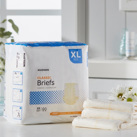 Unisex Adult Incontinence Brief McKesson Classic X-Large Disposable Light Absorbency