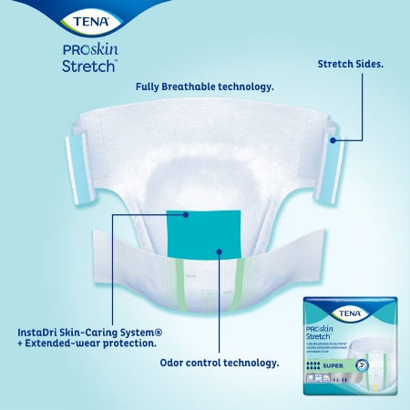 Unisex Adult Incontinence Brief TENA ProSkin Stretchâ„¢ Super Medium Disposable Heavy Absorbency