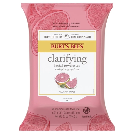 Facial Cleansing Towelette Burt’s BeesĀ® Clarifying Soft Pack Pink Grapefruit Scent 30 Count