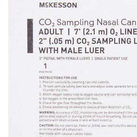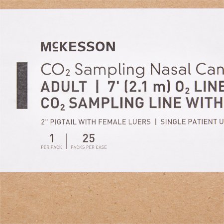 ETCO2 Nasal Sampling Cannula with O2 Delivery McKesson Adult Curved Prong / NonFlared Tip 7 Foot O2 / 2 Inch CO2 Line