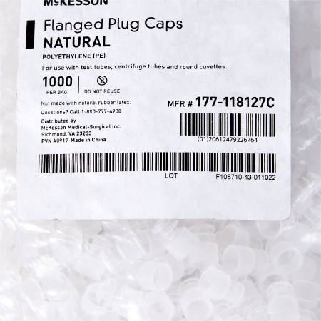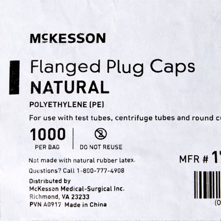 McKesson Tube Closure Polyethylene Flanged Plug Cap Natural 12 mm 12 mm Test Tubes Centrifuge Tubes Round Cuvettes NonSterile