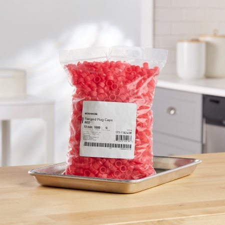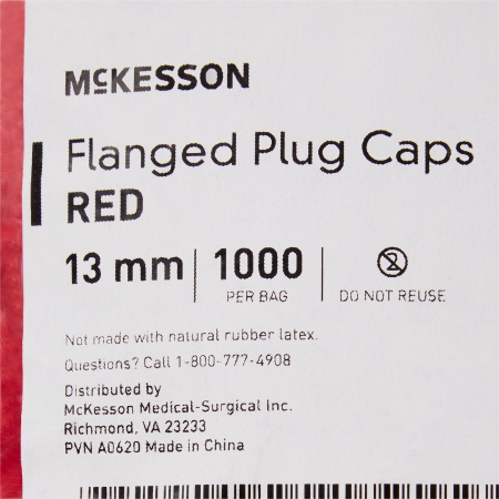 McKesson Tube Closure Polyethylene Flanged Plug Cap Red 13 mm For Use with 13 mm Blood Drawing Tubes Glass Test Tubes Plastic Culture Tubes NonSterile
