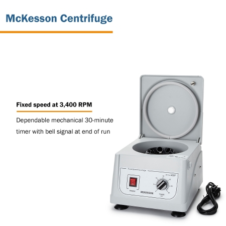 Fixed Speed Centrifuge McKesson 6 Place Fixed Angle Rotor Fixed speed at 3 400 RPMProduct Specification Sheet