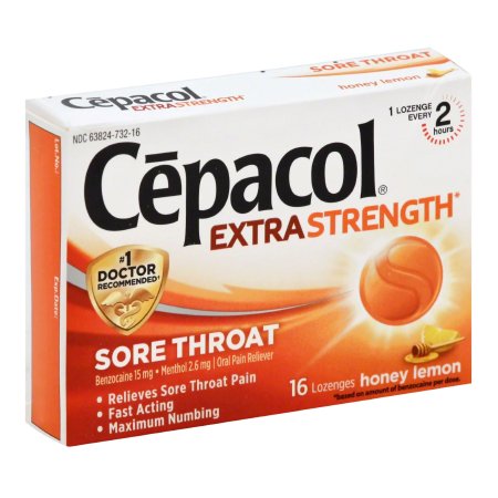 Sore Throat Relief CepacolĀ® Extra Strength 15 mg – 2.6 mg Strength Lozenge 16 per BoxProduct Specification Sheet