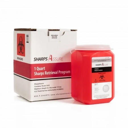 Mailback Sharps Container Sharps Assure Red Base 3-3/4 L X 3-3/4 W X 5.6 H Inch Vertical Entry 0.25 Gallon