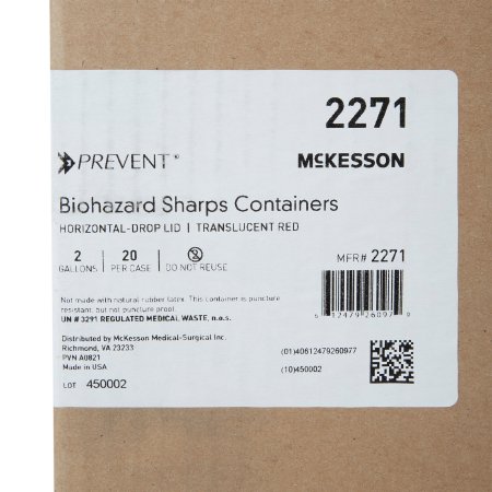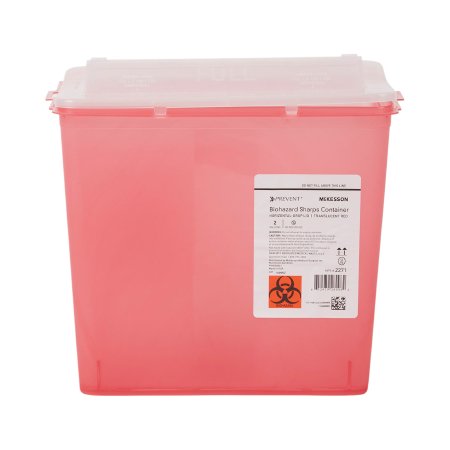 Sharps Container McKesson PreventĀ® Translucent Red Base 9-1/4 H X 10 W X 6 D Inch Horizontal Entry 2 Gallon
