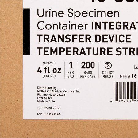 Urine Specimen Container with Integrated Transfer Device McKesson 120 mL (4 oz.) Screw Cap Patient Information Sterile