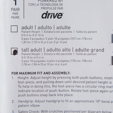 CRUTCH ALUMINIUM QUICK ADJ TALL ADLT 350LB (8PR/CS)