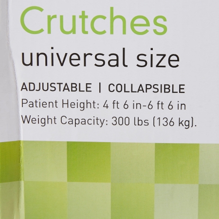 Underarm Crutches McKesson Youth / Adult / Tall Adult 4 Foot 6 Inch to 6 Foot 6 Inch User Height Aluminum Frame 300 lbs. Weight Capacity