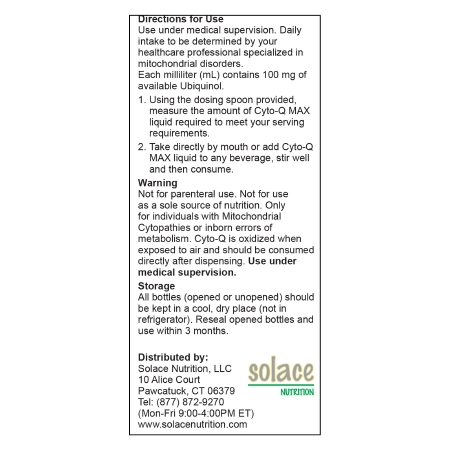 Oral Supplement Cyto-Q® MAX Unflavored Liquid 170 mL Bottle