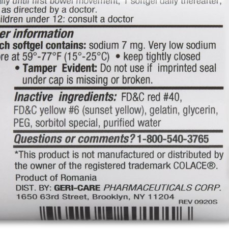 Stool Softener Geri-CareĀ® Softgel 100 per Bottle 100 mg Strength Docusate Sodium