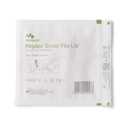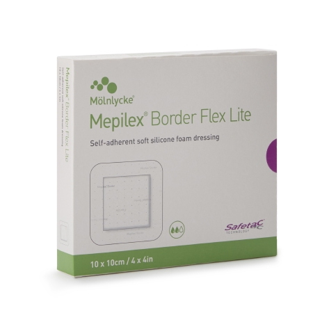 Thin Foam Dressing Mepilex® Border Flex Lite 4 X 4 Inch With Border Film Backing Silicone Adhesive Square Sterile