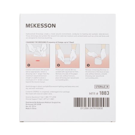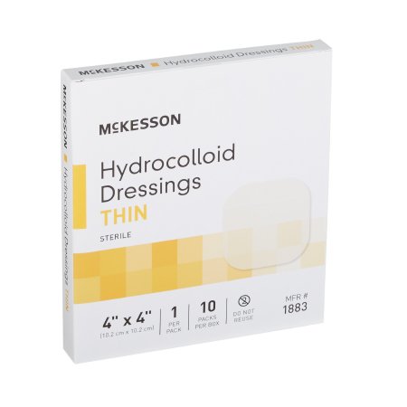 Thin Hydrocolloid Dressing McKesson Film Backing 4 X 4 Inch Square Hydrocolloid / Film