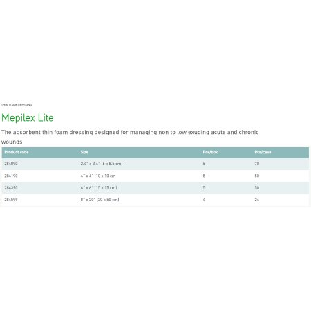 DRESSING MEPILEX LITE 4″X4″ (5/BX 10BX/CS)