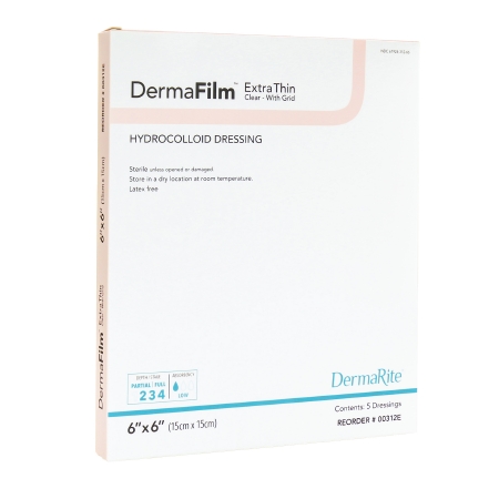 Thin Hydrocolloid Dressing DermaFilmĀ® Film Backing 6 X 6 Inch Square Hydrocolloid / Film