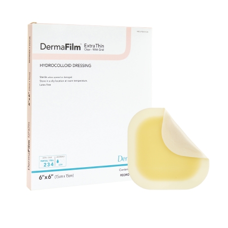 Thin Hydrocolloid Dressing DermaFilmĀ® Film Backing 6 X 6 Inch Square Hydrocolloid / Film