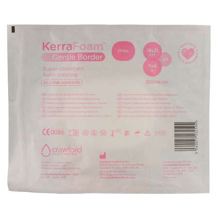 Foam Dressing KerraFoamâ„¢ Gentle Border 7 X 8 Inch With Border Film Backing Silicone Adhesive Oval Sterile