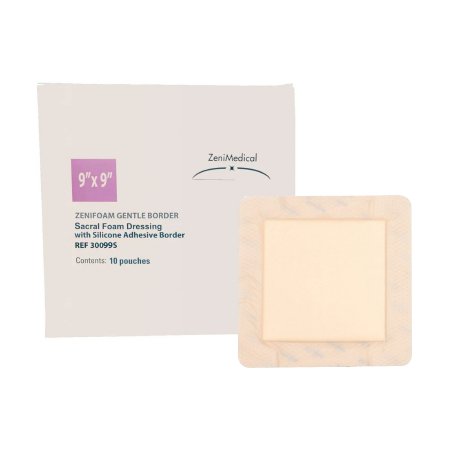 Foam Dressing ZeniFOAM Gentle Border 9 X 9 Inch With Border Waterproof Backing Silicone Face and Border Sacral Sterile