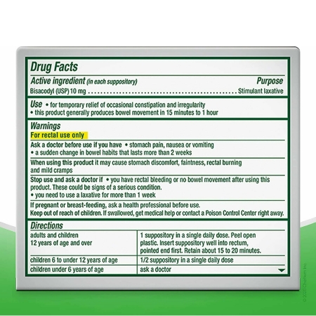 Laxative Dulcolax® Suppository 8 per Box 10 mg Strength Bisacodyl USP