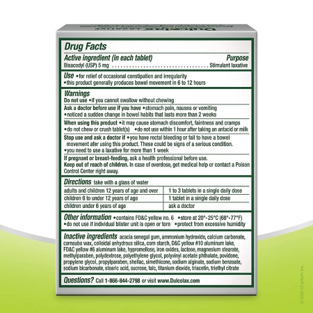 Laxative Dulcolax® Tablet 25 per Box 5 mg Strength Bisacodyl USP