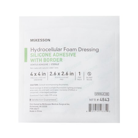 Foam Dressing McKesson 4 X 4 Inch With Border Film Backing Silicone Gel Adhesive Square Sterile