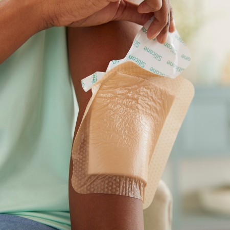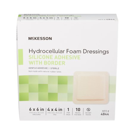 Foam Dressing McKesson 6 X 6 Inch With Border Film Backing Silicone Gel Adhesive Square Sterile