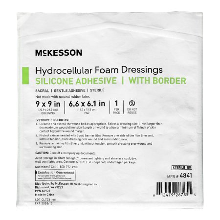 Foam Dressing McKesson 9 X 9 Inch With Border Waterproof Film Backing Silicone Gel Adhesive Sacral Sterile