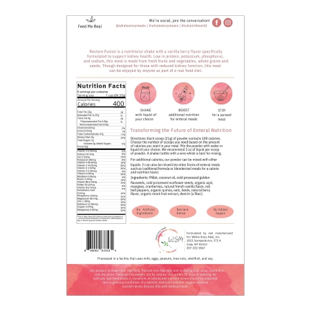 Oral Supplement Restore Fusion Renal Support Vanilla Berry Flavor Powder 16 oz. Pouch