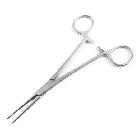 Hemostatic Forceps Econo Sterile⢠Kelly-Rankin 6-1/4 Inch Length Floor / Office Grade Pakistani Stainless Steel Sterile Locking Finger Ring Handle Straight Serrated Tips
