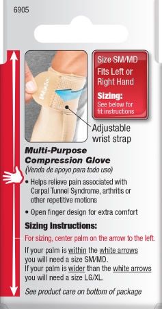 Compression Glove Mueller® Compression & Support Gloves Fingerless Small / Medium Over-the-Wrist Length Ambidextrous Nylon / Polyester / Spandex