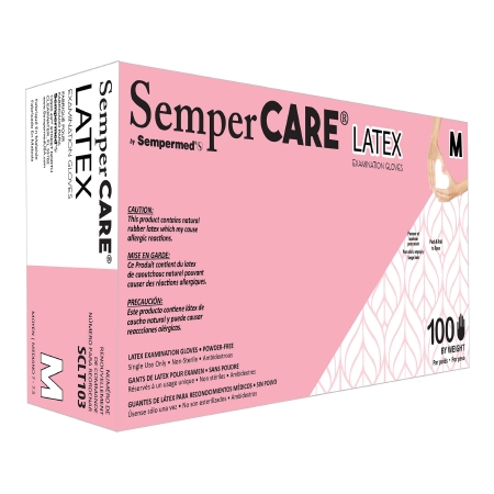 Exam Glove SemperCare® Latex Medium NonSterile Latex Standard Cuff Length Micro-Textured Ivory Not Rated